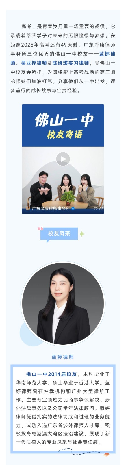 泽康所佛山一中校友寄语:逐梦前行,未来可期
